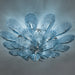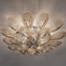 This hand-blown exquisite contemporary Venetian ceiling lamp is entirely crafted from Murano glass. Characterized by its flower shapes, the lamp includes 20 lights and is embellished with a refined diamond-patterned surface.