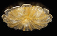 This elegant handmade ceiling lamp, crafted from Murano glass is made of a closed lampshade that includes four lights and is embellished with precious glass leaves.