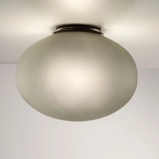 A beautiful hand-blown flush ceiling light in three Murano glass finishes. The clear version is created with a special balloton mould to make the lovely criss-cross pattern you see on the glass. The other options are satin smoke glass and glossy white glass.