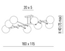 Ceiling light with painted bronze metal structure and diffusers with 8 glass bubbles.
