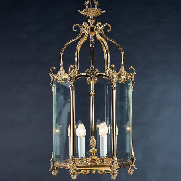 A beautiful 6 light lantern with a French gold frame. An elegant addition to any room. In the true Italian tradition, it's very generously proportioned.