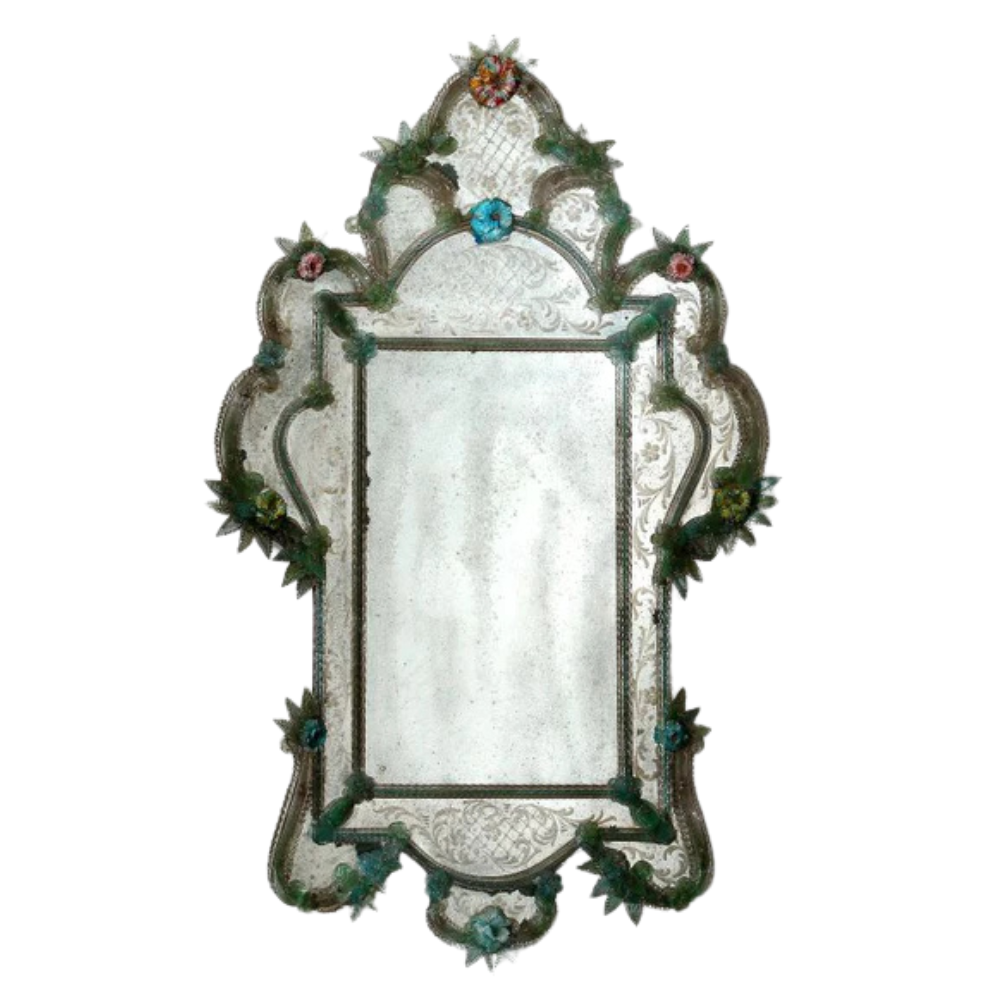 Venetian Mirror Wth Delicate Glass Flower Decoration